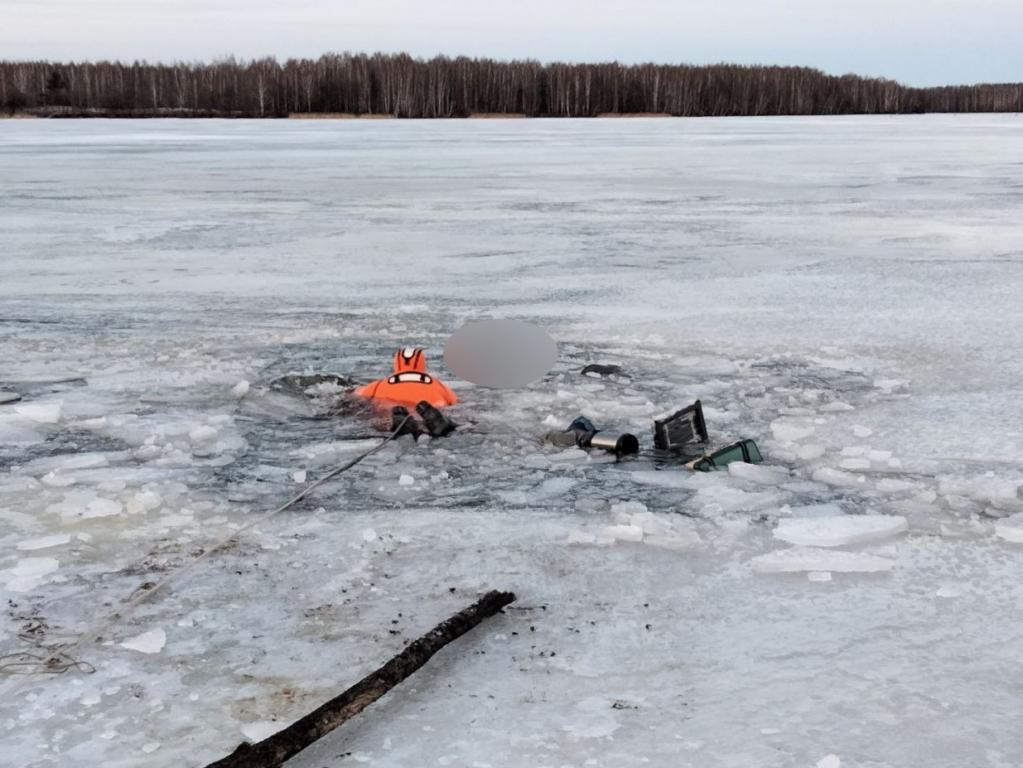 Двое рыбаков 1958 г.р. и 1980 г.р. на снегоходе типа «собака» провалились под лёд. Мужчина помоложе смог выбраться и вызвал спасателей.
