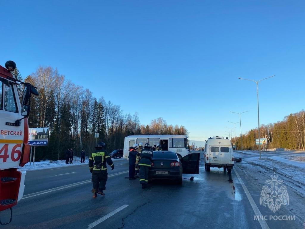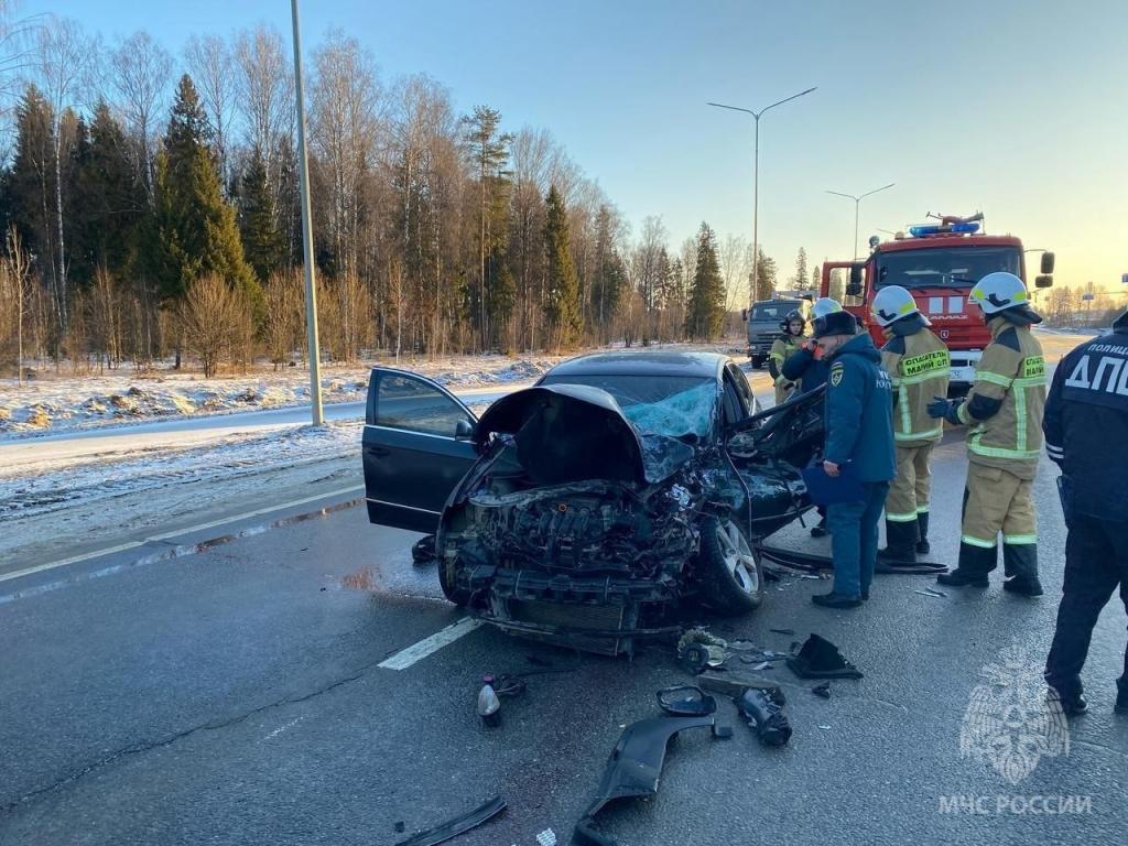 Происшествие случилось около 6:00. Установлено, что Volkswagen «Passat» выехал на встречную полосу и столкнулся с автобусом ПАЗ.