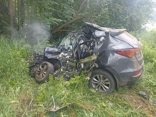 По предварительным данным, водитель Hyundai Santa Fe выехал на встречку, где совершил столкновение с автомашиной «КамАЗ», груженной щебнем. От удара грузовик опрокинулся на проезжавший мимо автомобиль Hyundai Solaris.