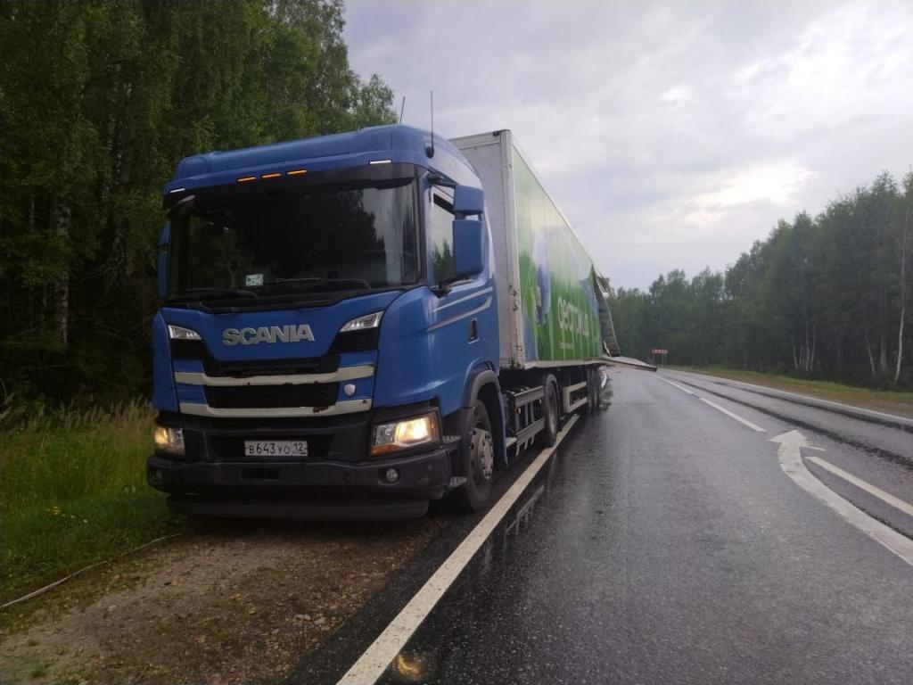 В Медведевском районе автоинспекторы устанавливают обстоятельства ДТП с двумя грузовиками.
