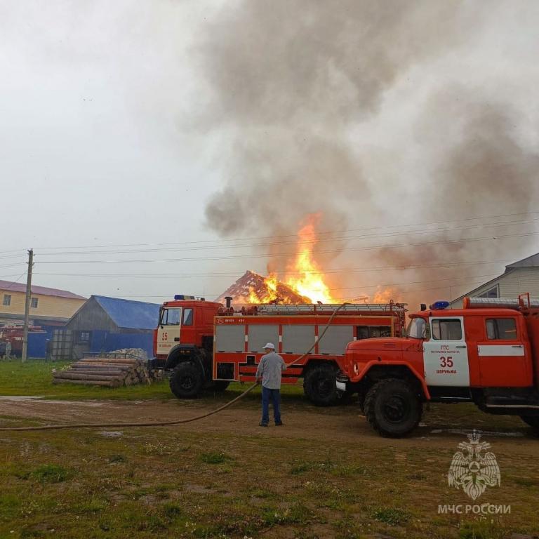 Очаг возгорания находился в сарае. Ситуацию усугубило складированное там сено.