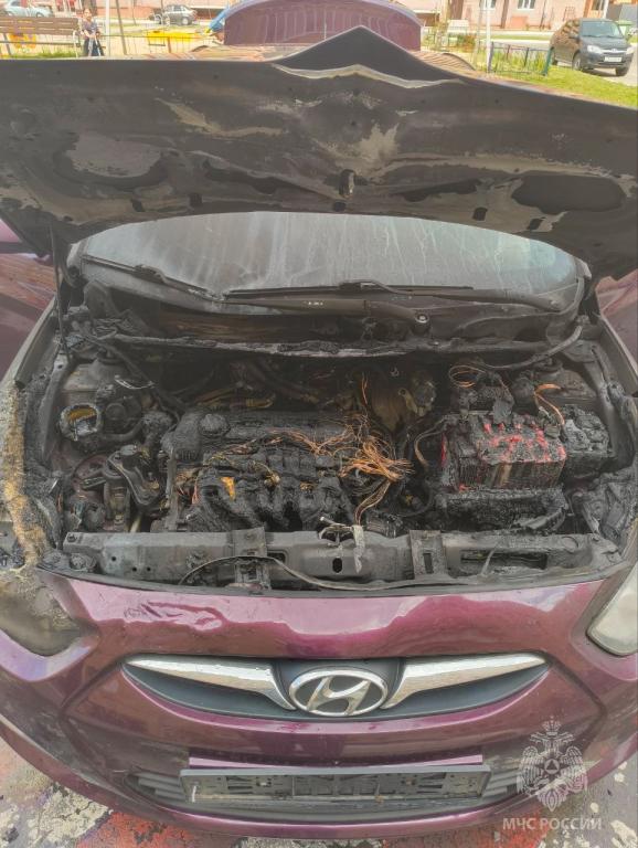 Накануне утром во дворе одного из домов по Йывана Кырли загорелся автомобиль Hyundai Solaris.