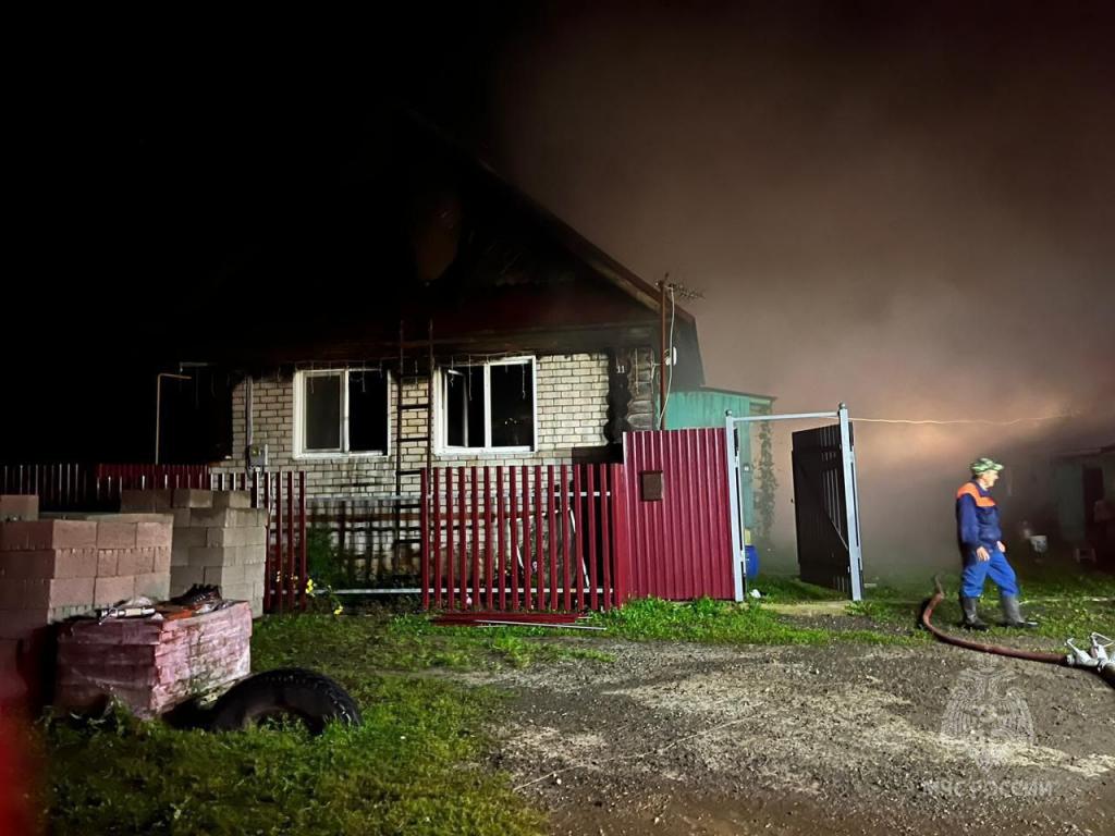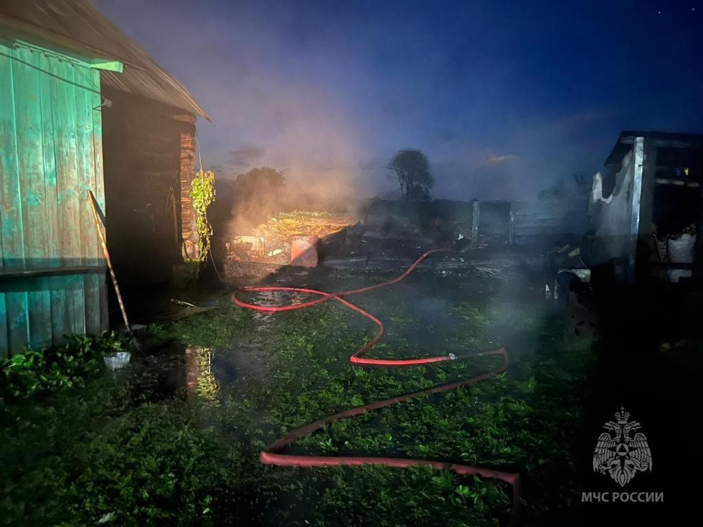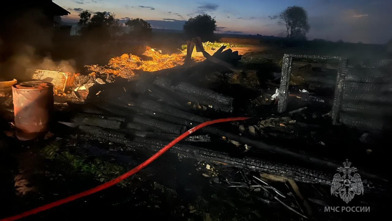 В результате возгорания хлев уничтожен, дом и баня повреждены.