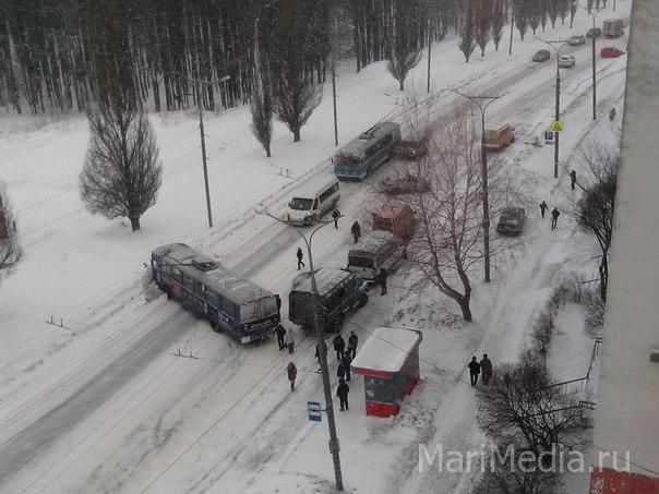 Как рассказали ИА «МариМедиа» в отделе пропаганды ОБ ДПС ГИБДД УВД столицы, 63-летний водитель на машине «ЗИЛ-4314» не справился с управлением и врезался в троллейбус. Далее последовала цепная реакция - троллейбус влетел в «Nissan», «Nissan» - в «Peugeot», «Peugeot» - в «Газель». От полученных ударов автомобили развернуло поперек проезжей части, тем самым, перекрыв движение в обоих направлениях. По словам сотрудников ГИБДД, по чистой случайности из людей никто не пострадал.