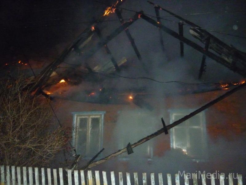 Трагедия произошла накануне вечером в д. Мустаево Сернурского района. Сообщение о возгорании поступило в пожарную службу в 20.18. На момент прибытия первого подразделения крыша жилого дома была полностью охвачена огнем. По имеющейся информации, очаг пожара находился на веранде, откуда огонь моментально распространился на крышу деревянного строения. Общая площадь пожара составила примерно 160 кв. метров. Полностью сгорела крыша, повреждено имущество. По данным пресс-служба РГКУ «УГПС Республики Марий Эл», в ходе разбора завалов на пожарище было найдено тело 54-летней женщины. Двум жильцам удалось спастись. Как считают специалисты, причиной гибели женщины стала непотушенная сигарета.
