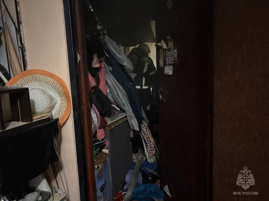 Площадь пожара была небольшой: всего 3 кв. метра, но ситуацию усугубляла захламлённость помещения. Внутри было очень много мусора, горение которого грозило распространиться и на соседние квартиры. Возникло сильное задымление в подъезде, из-за чего с верхних этажей пришлось эвакуировать жильцов. На улицу с помощью устройства типа «капюшон» вывели четверых человек, в том числе двоих детей.