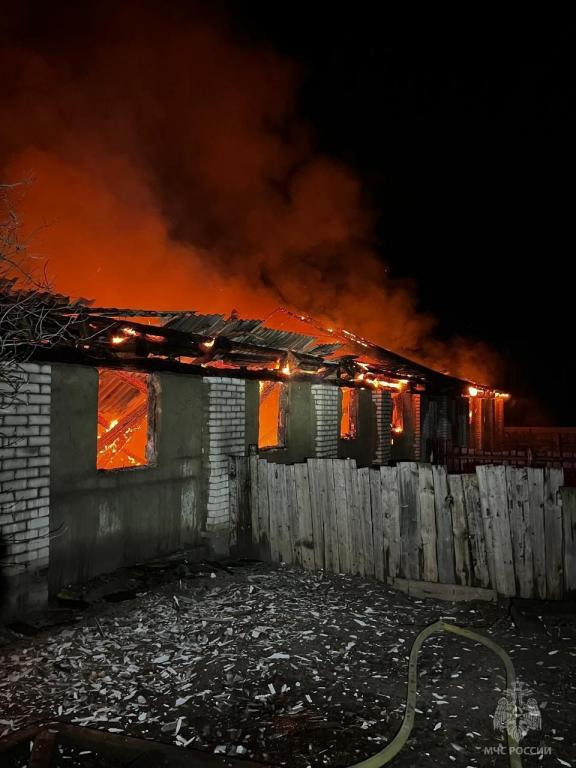 К прибытию пожарных здание полностью полыхало в огне. Пламя охватило площадь около 450 кв. метров.