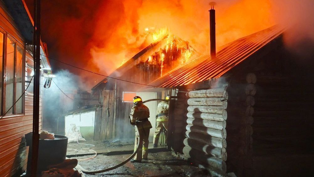 Ночью 7 декабря около двух часов в дежурную часть поступило сообщение о возгорании в частном подворье в деревне Елембаево Новоторъяльского района.