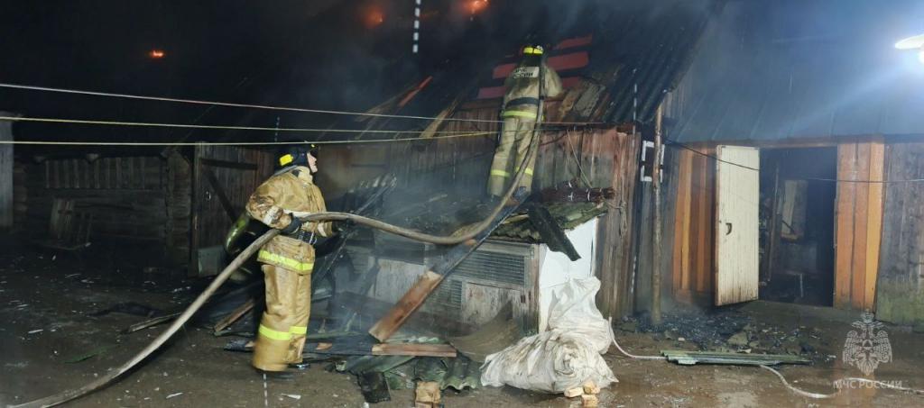 К моменту прибытия пожарных подразделений горели кровля бани и курятника, также огонь успел перекинуться на крышу хлева. Пожарные оперативно локализовали и ликвидировали пожар на площади около 80 квадратных метров, не допустив распространения огня на жилой дом.