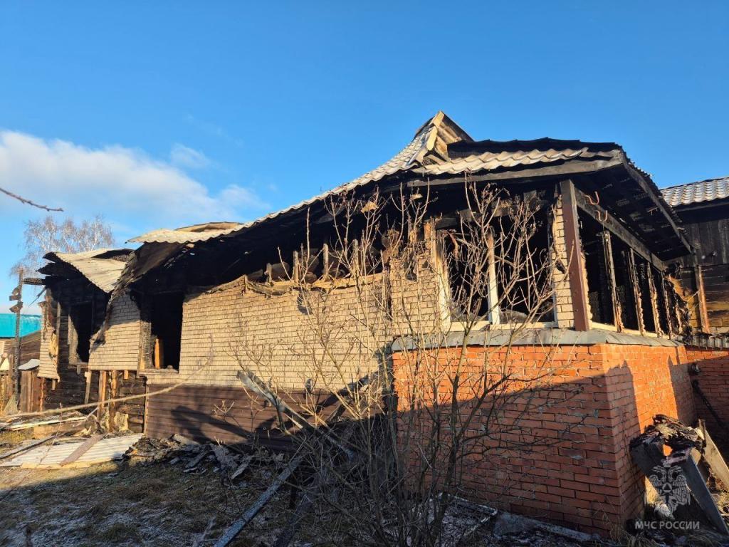 Пожарные не допустили переход пожара на другие строения, но домовладение выгорело полностью.