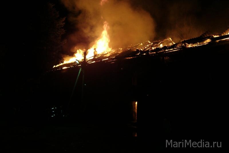 Выгорели крыша дома, чердачное помещение и лестничные площадки. Имущество жильцов пострадало от воды, используемой при локализации и ликвидации пламени. Предположительно, причина пожара — поджог, — сообщает группа информации ГУ МЧС РФ по РМЭ