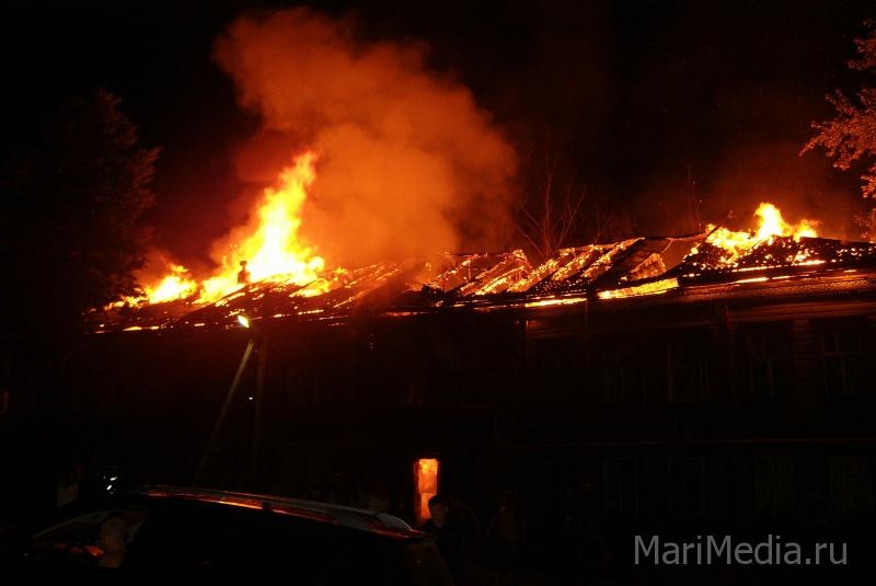 МариМедиа, 26 августа. Такова официальная предварительная версия пожарных. Жилой двухэтажный дом по улице Вознесенской марийской столицы загорелся 25 августа около 01.42.