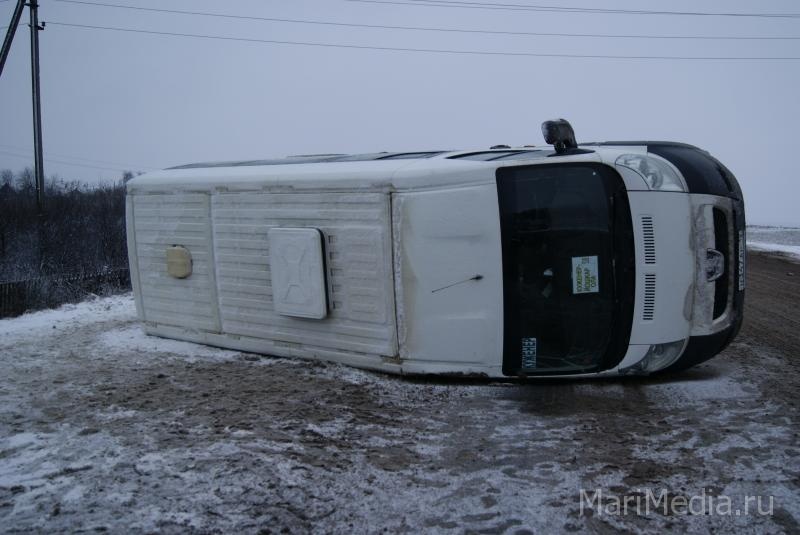 МариМедиа, 27 ноября. Дорожно-транспортное происшествие произошло накануне около 15.30. В дежурную часть УГИБДД поступило сообщение о том, что на Сернурском тракте, у поворота на деревню Савино съехала в кювет маршрутка Peugeot Boxer и перевернулась.