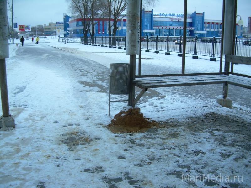 Не смотря на то, что снегоуборочная техника уже работает в городе, пешеходные дорожки не везде засыпаны песком и потому довольно скользко. Йошкаролинцы особенно остро это ощутили сегодня утром, после ночных заморозков. Не лучше обстоит обстановка и на остановочных павильонах, песок лежит кучками в сторонке, в то время как территория остановки скована ледяной корочкой.