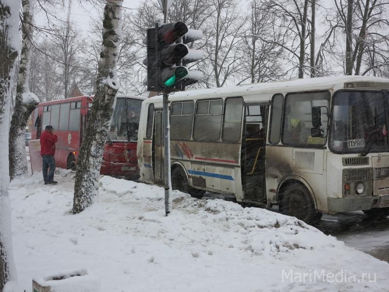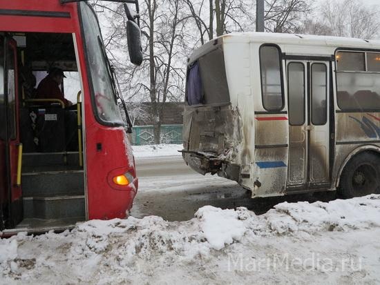 МариМедиа, 11 января. Сегодня утром на перекрестке улиц Водопроводная и Первомайская Йошкар-Олы произошло ДТП с участием двух автобусов.
