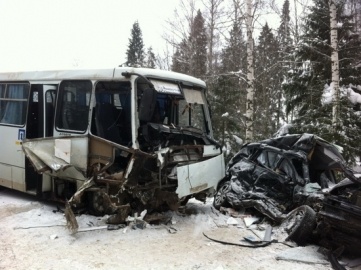 По предварительной версии, в момент проезда опасного поворота автомобиль Hyundai вылетел на «встречку» и столкнулся с автобусом, двигавшимся из Йошкар-Олы.