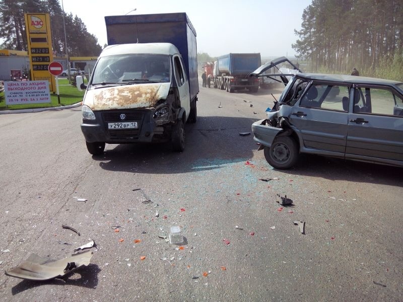 По предварительным данным, 29-летний водитель, управляя автомашиной «ГАЗ», на въезде в Волжск не выбрал безопасную дистанцию и врезался в впереди идущую «четырнадцатую». От удара легковая автомашина выкатилась на полосу встречного движения, где в свою очередь, врезалась в грузовой автомобиль «МАЗ».