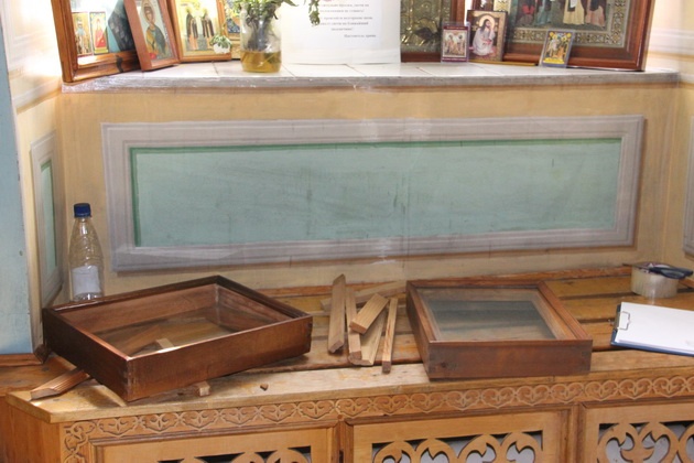 Кража была совершена две недели назад. В ночь на 5 сентября злоумышленники, спилив дужку навесного замка на металлической двери, проникли внутрь храма и вынесли из помещения 17 икон и книгу «Евангелие». Утром работник церкви заметила пропажу и сразу сообщила об этом настоятелю храма.