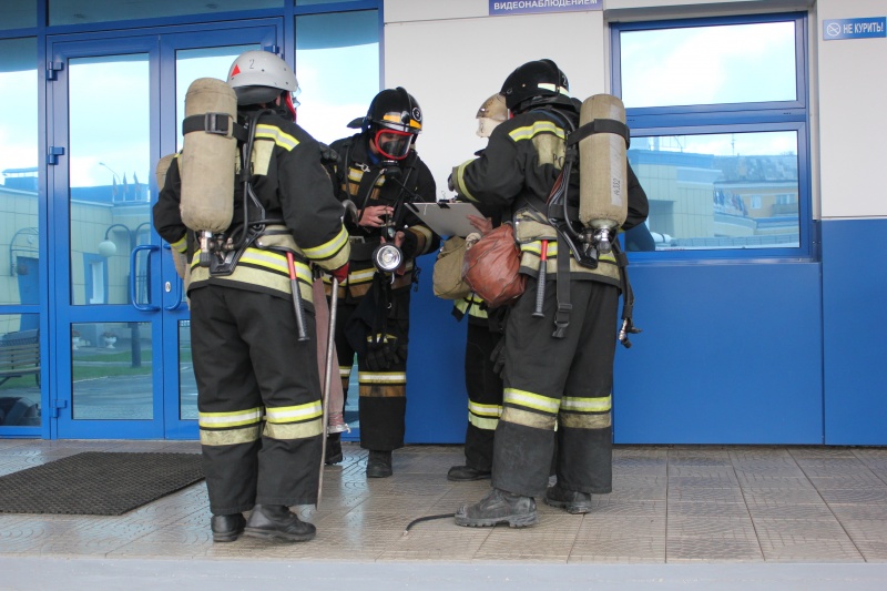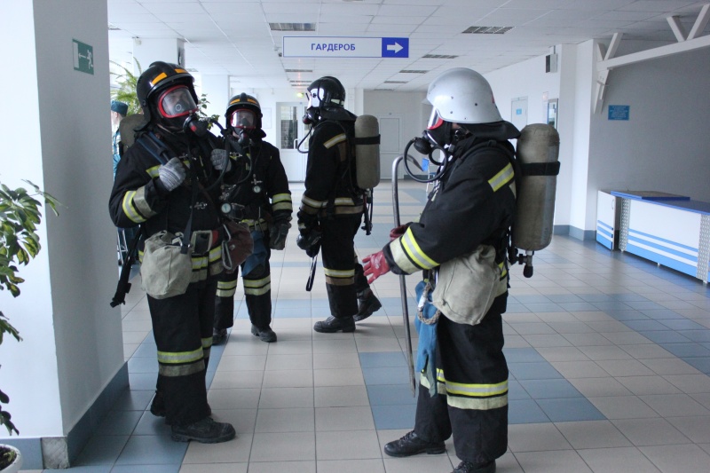 На место условного пожара прибыли офицеры йошкар-олинской службы пожаротушения, бойцы специализированной пожарно-спасательной части, огнеборцы ПЧ-2, ПЧ-4, ПЧ-5 и ПЧ-6. Бойцы звеньев газодымозащитной службы в дыхательных аппаратах проникли в здание и начали работы по спасению «пострадавших» и тушению «пожара».