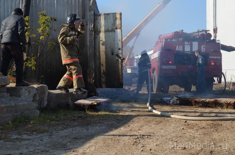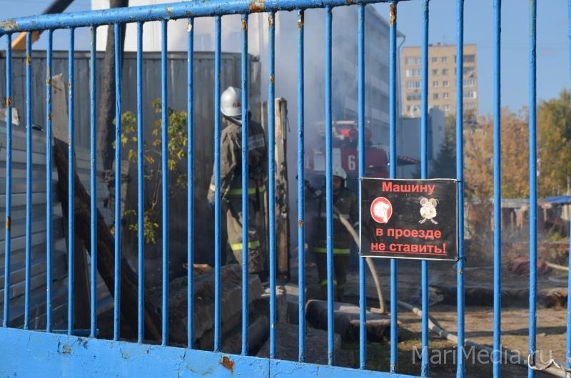 МариМедиа, 3 октября. До приезда пожарных рабочие стройки тушили открытый огонь своими силами. Возгорание произошло около 13.55.