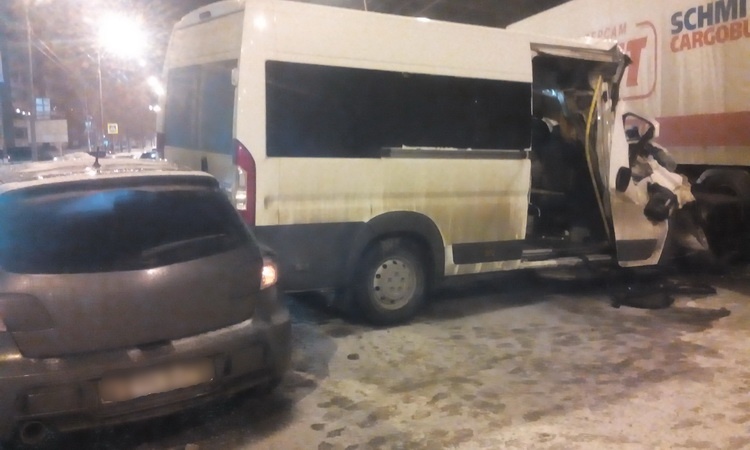 В Йошкар-Оле при столкновении маршрутного автобуса с грузовиком пострадали три человека