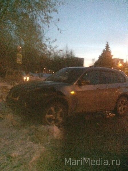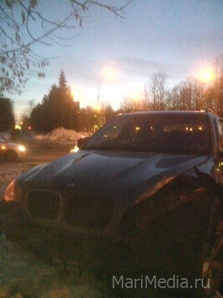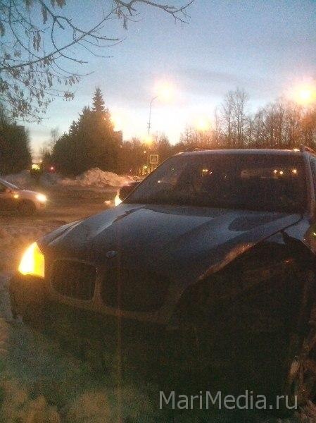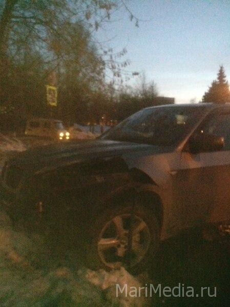 МариМедиа, 4 марта. ДТП произошло на перекрестке улиц Хасанова и Советская. Со слов очевидцев, по счастливой случайности, от вылетевшего на тротуар внедорожника, не пострадали проходящие мимо пешеходы.