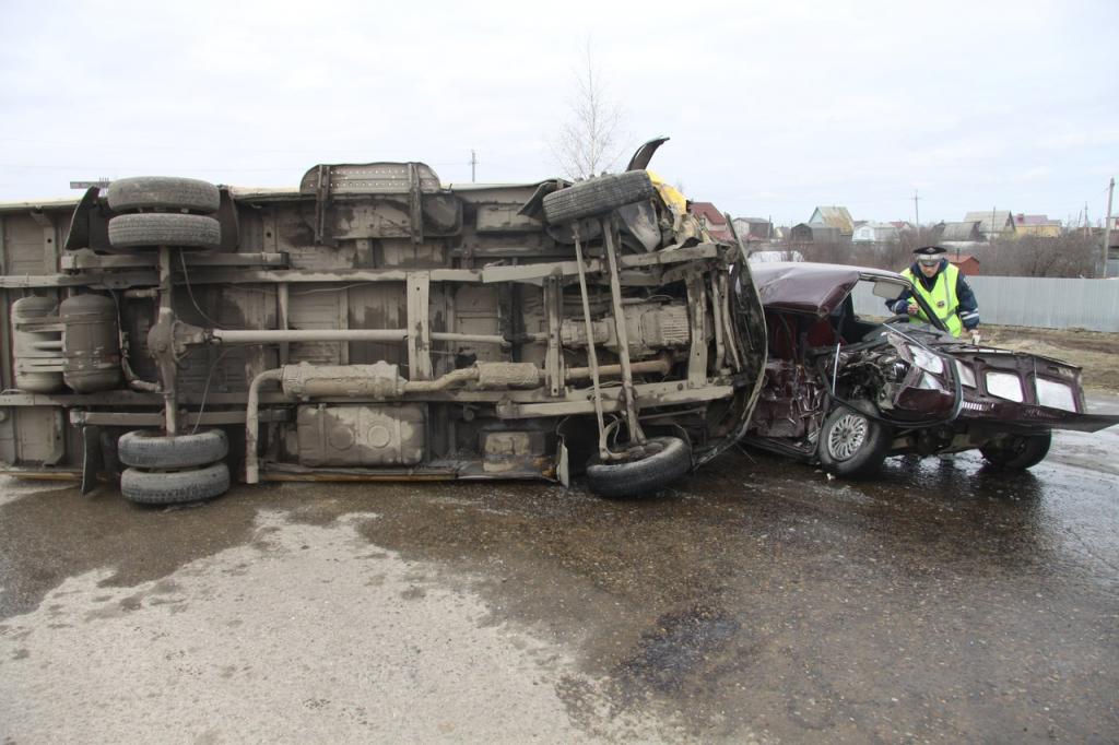 По предварительным данным, водитель маршрутки выехал на полосу встречного движения и врезался в «ВАЗ-2107». От удара микроавтобус перевернулся.