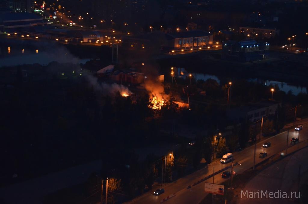 МариМедиа, 13 августа. Накануне вечером вспыхнули постройки, расположенные на заброшенной конюшне в парке на берегу реки М. Кокшага. Пожар возник около 20 часов.