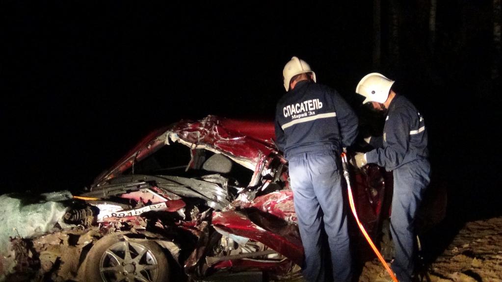 ДТП произошло накануне около 17:00 на 28 км объездной дороги с Казанского на Сернурский тракт. В результате лобового столкновения автомобиля КамАЗ и «ВАЗ-2112» водитель легковушки погиб. От спасателей требовалась помощь деблокировать его из автомобиля. Разрезав кузов «двенадцатой» с помощью гидроинструмента, спасатели достали тело и передали сотрудникам полиции.