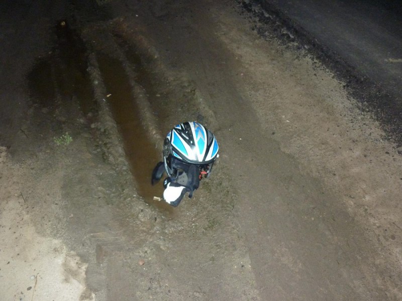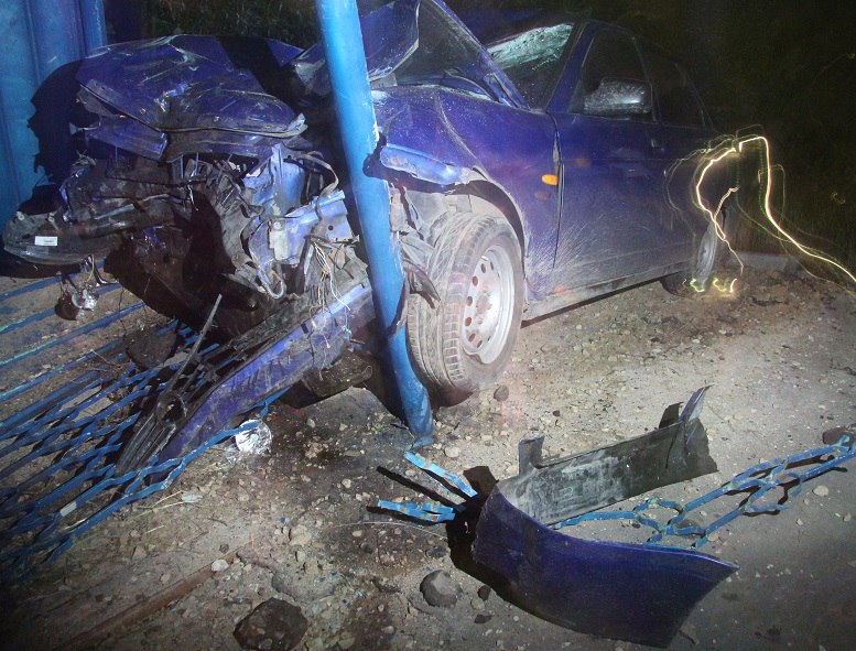 После столкновения с мотоциклом машину отбросило на остановку общественного транспорта, где по счастливой случайности в это время никого не было.