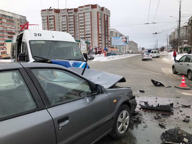 Сегодня около 9:00 на перекрестке улиц Петрова и Воинов Интернационалистов столкнулись пассажирский микроавтобус Peugeot и легковой автомобиль Samand. В больницу доставлены пассажирка иномарки и пассажир маршрутки.