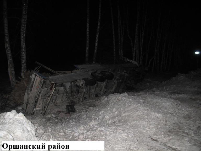 Ночью в Оршанском районе на 124 км автодороги Вятка в кювете оказалась грузовая автомашина Renault с полуприцепом. 49-летний водитель не выбрал безопасную скорость движения, не учел дорожные и метеорологические условия. Водитель помещен в больницу.