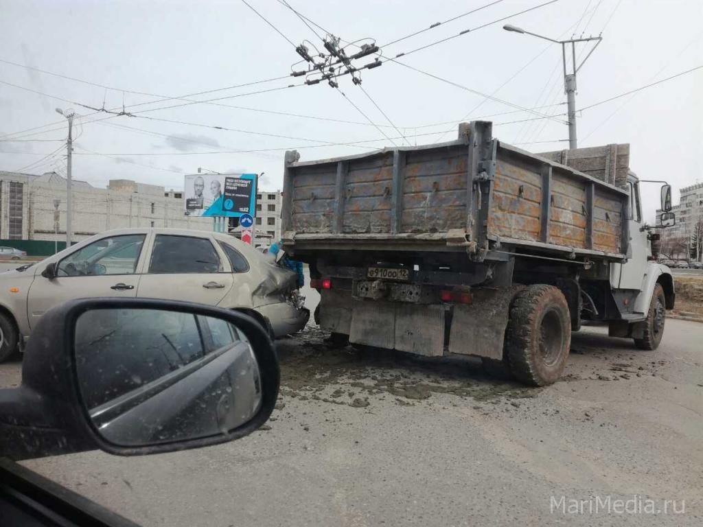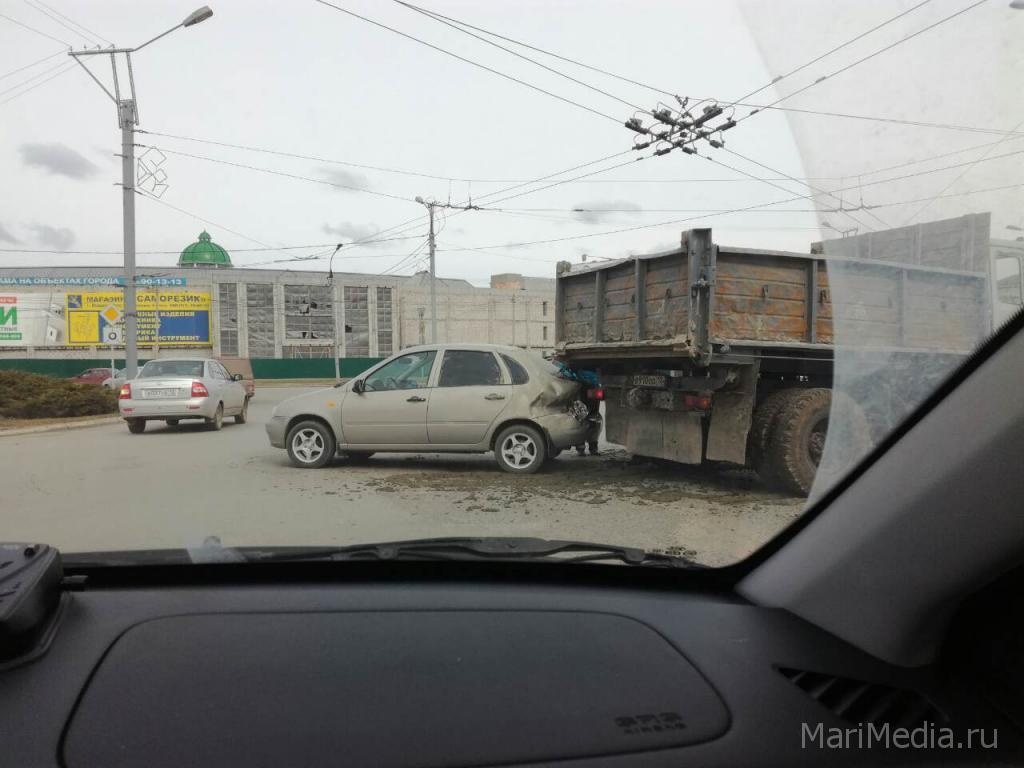 Сегодня около 9:30 в Сомбатхее на кольце улицы Эшкинина и Ленинского проспекта произошло автостолкновение. «Лада Калина» оказалась под кузовом автомашины «ГАЗ», груженной цементно-бетонной смесью. Как сообщили ИА «МариМедиа» в группе пропаганды ОБ ГИБДД УВД Йошкар-Олы, обошлось без пострадавших. В настоящее время на месте аварии работают инспекторы ДПС.