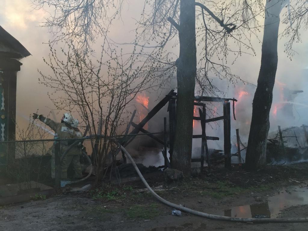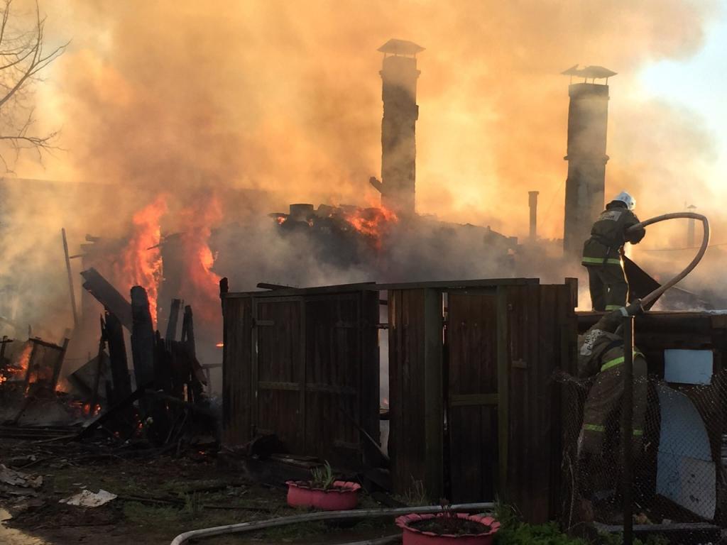 Дом, в котором начался пожар, сгорел, серьёзные повреждения получило соседнее жилое строение, сообщили в ГУ МЧС.