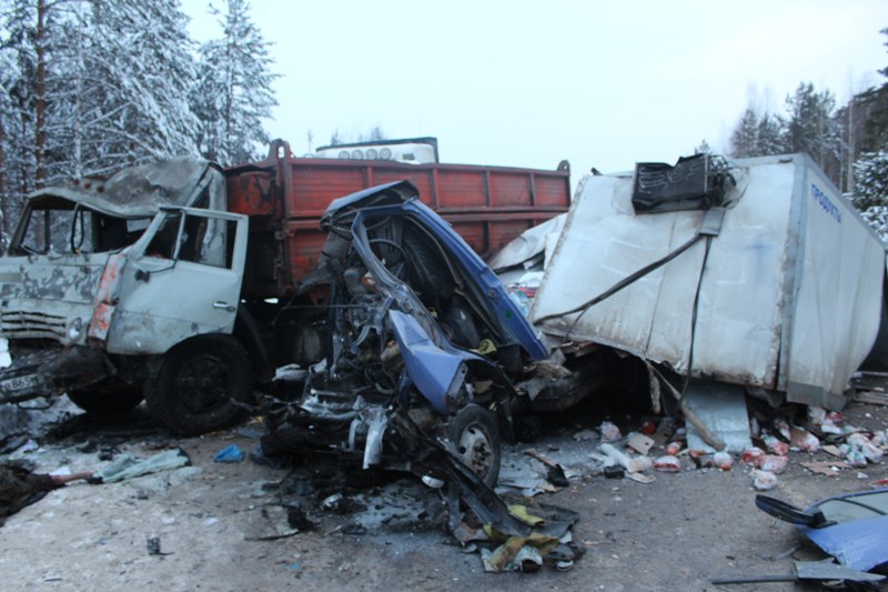 По предварительным данным сотрудников ГИБДД, работавших на месте аварии, 49-летний водитель, управляя «ГАЗ-3302», не выбрал безопасную скорость движения, не учёл дорожные и метеорологические условия, не справился с управлением, выехал на встречную полосу и врезался в «КамАЗ-5511». От удара «КамАЗ» отбросило на стоящую, на правой обочине автомашину «МАЗ-3544» — лесовоз.