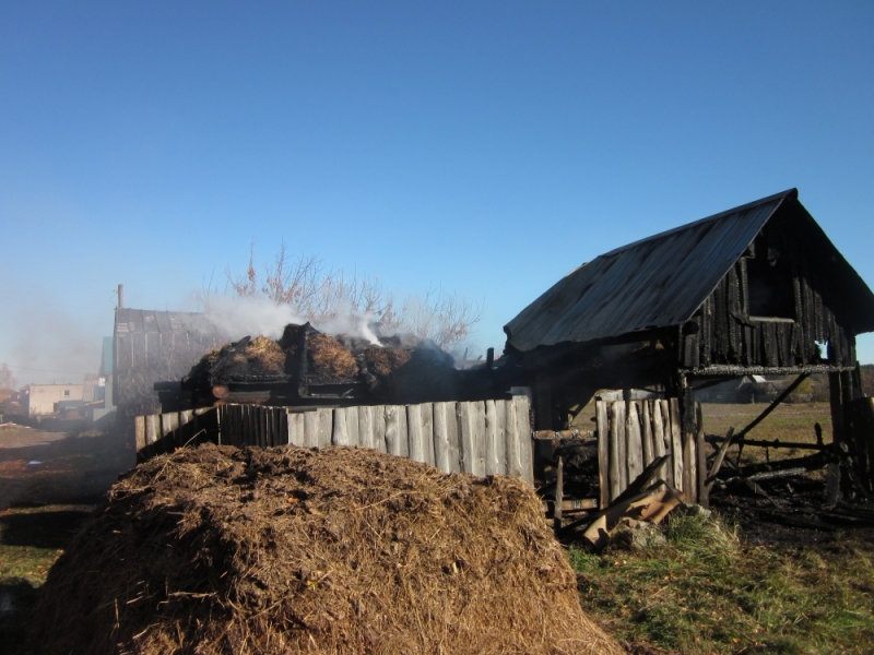 В результате случившегося сгорел хлев, удалось не допустить распространения пламени на хозяйственные постройки. Ещё до прибытия пожарных хозяйка успела вывести на улицу корову. Две свиньи и бык сгорели.