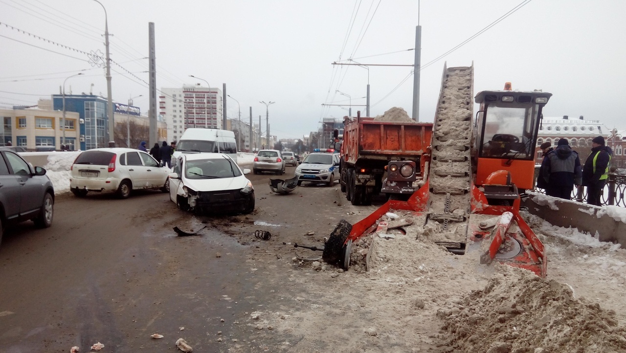 По данным УГИБДД МВД РМЭ, в субботу, 9 февраля, в Йошкар-Оле на Центральном мосту произошло столкновение 3 транспортных средств: снегопогрузчика, микроавтобуса и автомашины Hyundai.