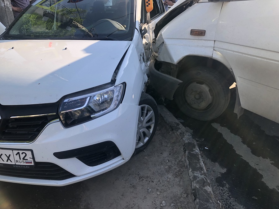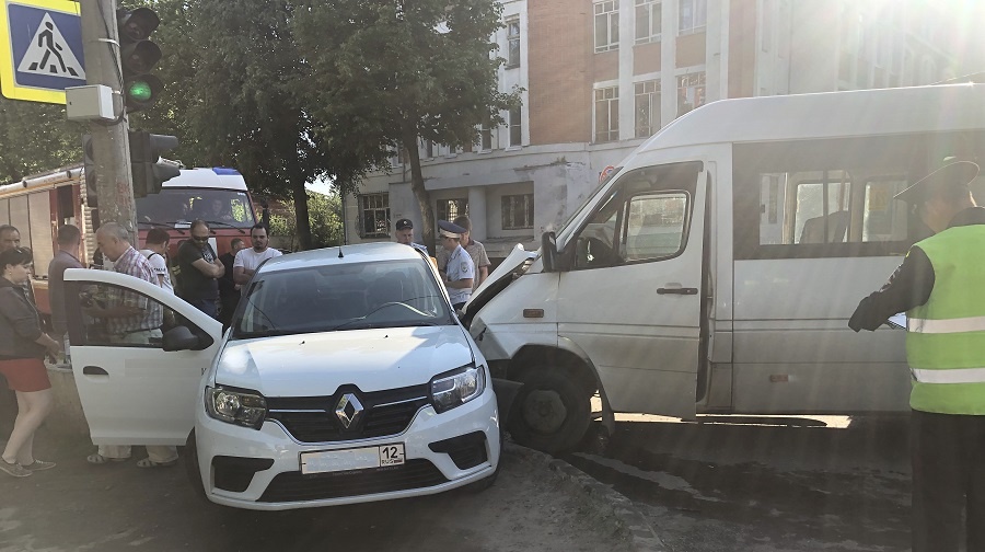 В Йошкар-Оле на перекрёстке ул. Чехова и ул. Советской произошло столкновение «Рено» и пассажирского микроавтобуса «Мерседес». По предварительным данным, 59-летний водитель легковушки выехал на перекрёсток на запрещающий сигнал светофора.