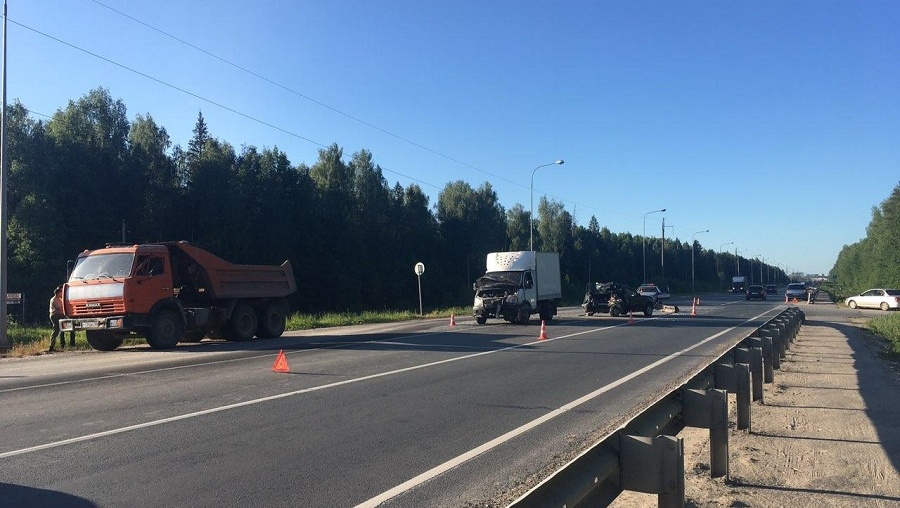 Как сообщили в УГИБДД МВД, по предварительным данным, ДТП спровоцировал 22-летний водитель ГАЗ-2747, нарушив правила расположения транспортного средства на проезжей части дороги. В итоге его машина врезалась в Daewoo Nexia, которая следовала впереди, с последующим наездом на КамАЗ и другую иномарку.