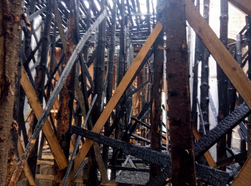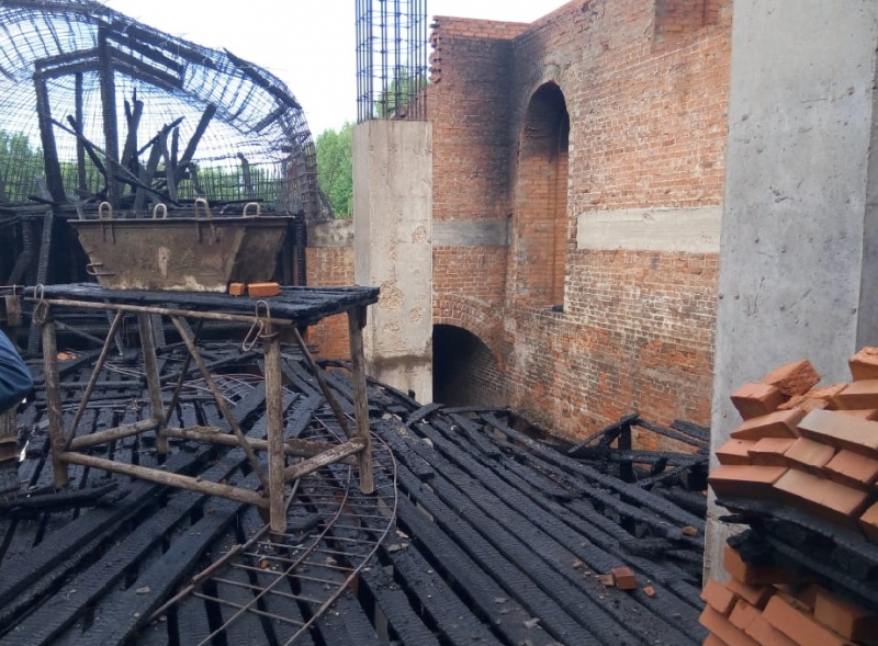 В результате происшествия сгорели строительные леса, закопчены кирпичные стены постройки. Пострадавших нет.