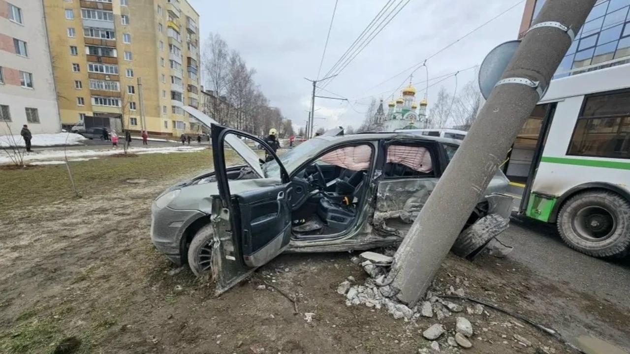 По данным ГАИ, 26-летний водитель легкового автомобиля нарушил правила расположения транспортного средства на проезжей части, с целью обгона выехал на встречную полосу движения, где произошло столкновение с движущимся навстречу микроавтобусом с последующим наездом Porsche Cayenne на опору линии электропередачи.