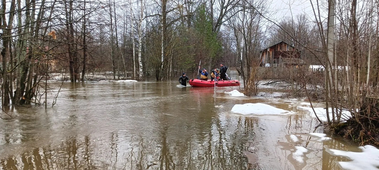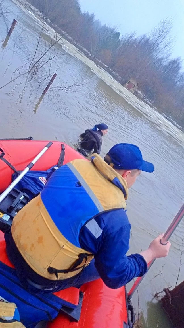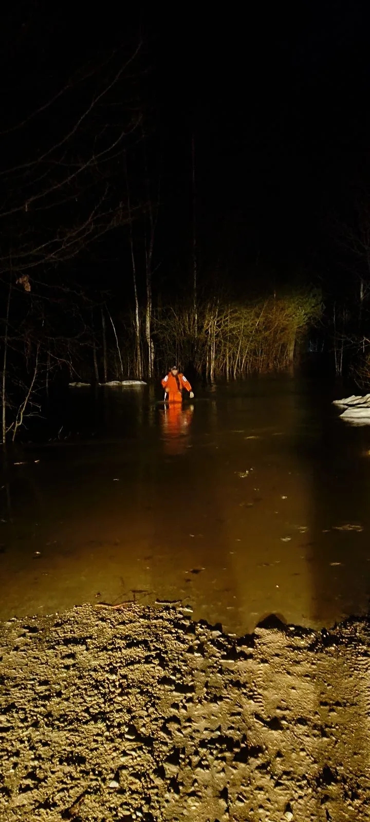 Прибыв на место, спасатели оценили обстановку. До затопленного участка необходимо было пройти по воде около 900 метров, но из-за сильного течения талых вод быстро добраться до пострадавших было невозможно.