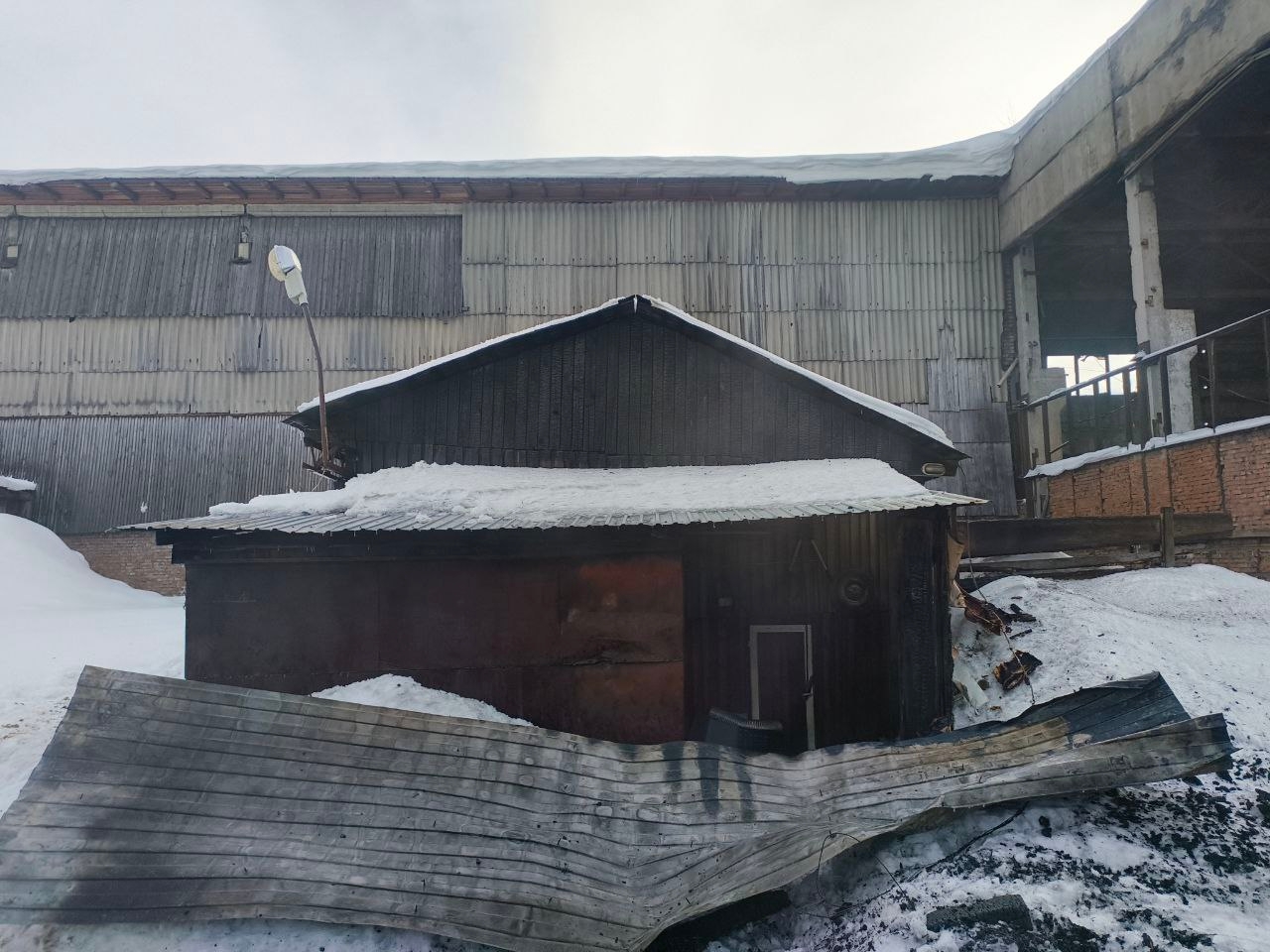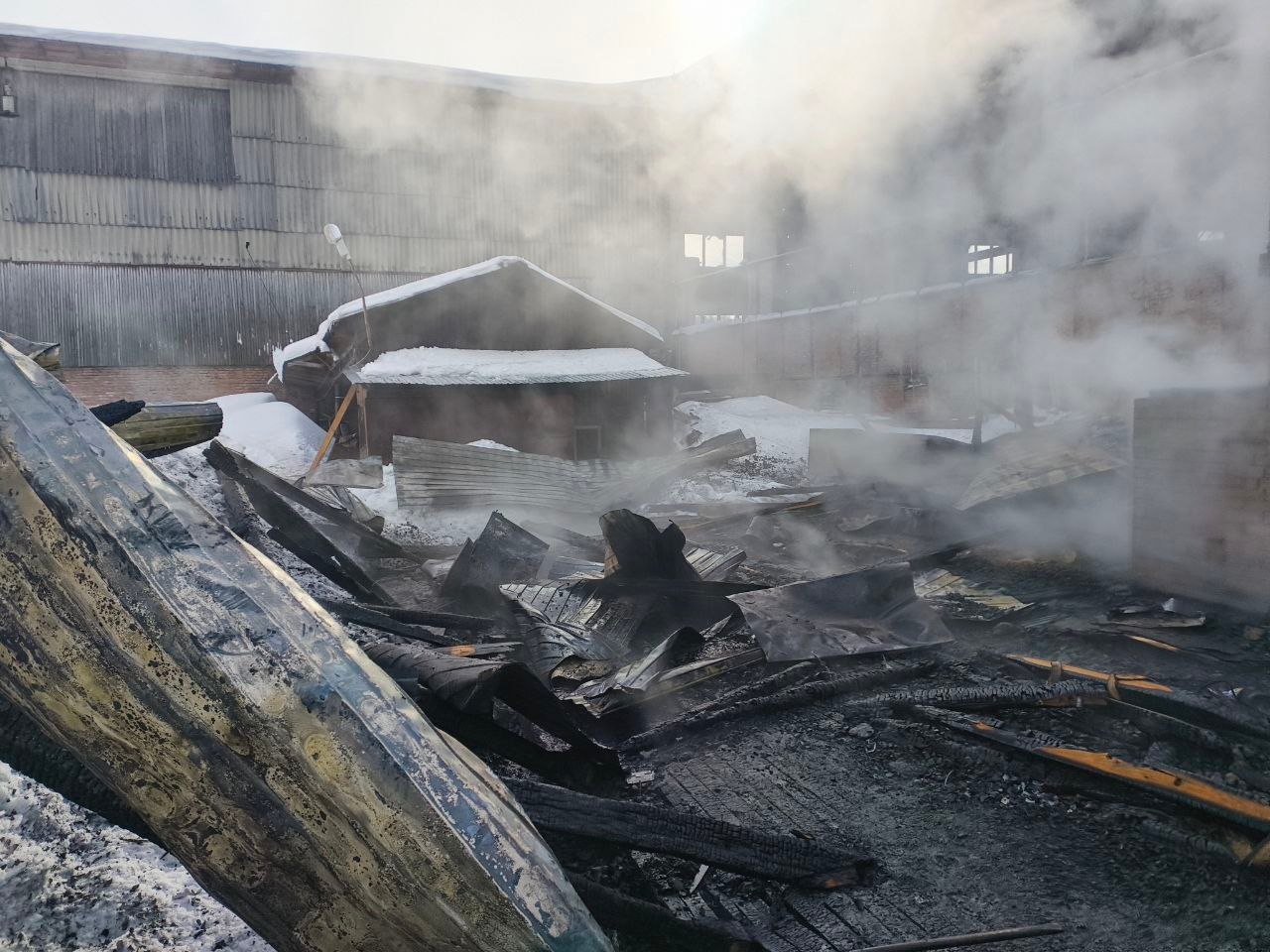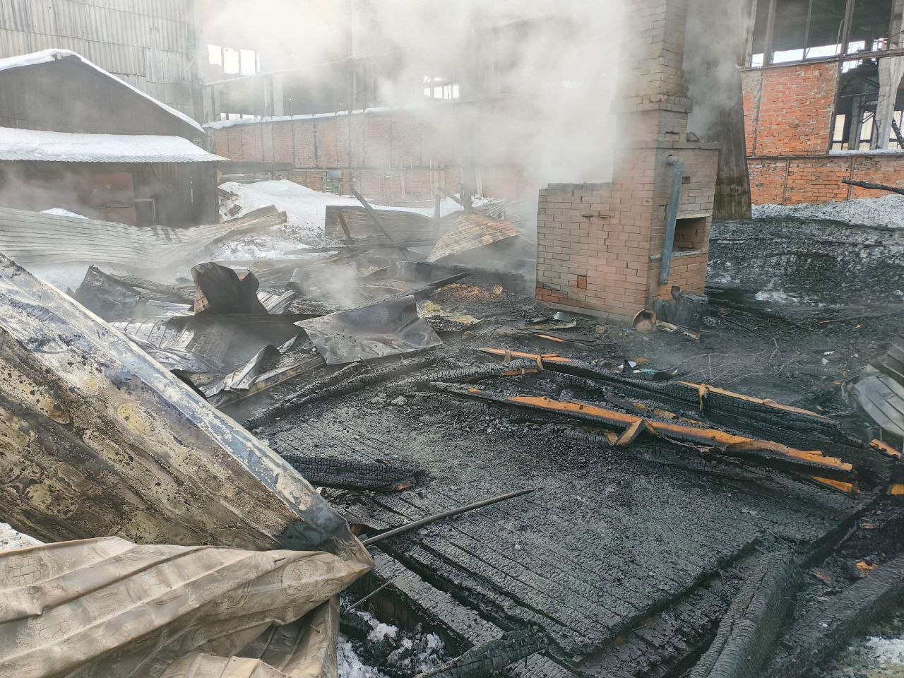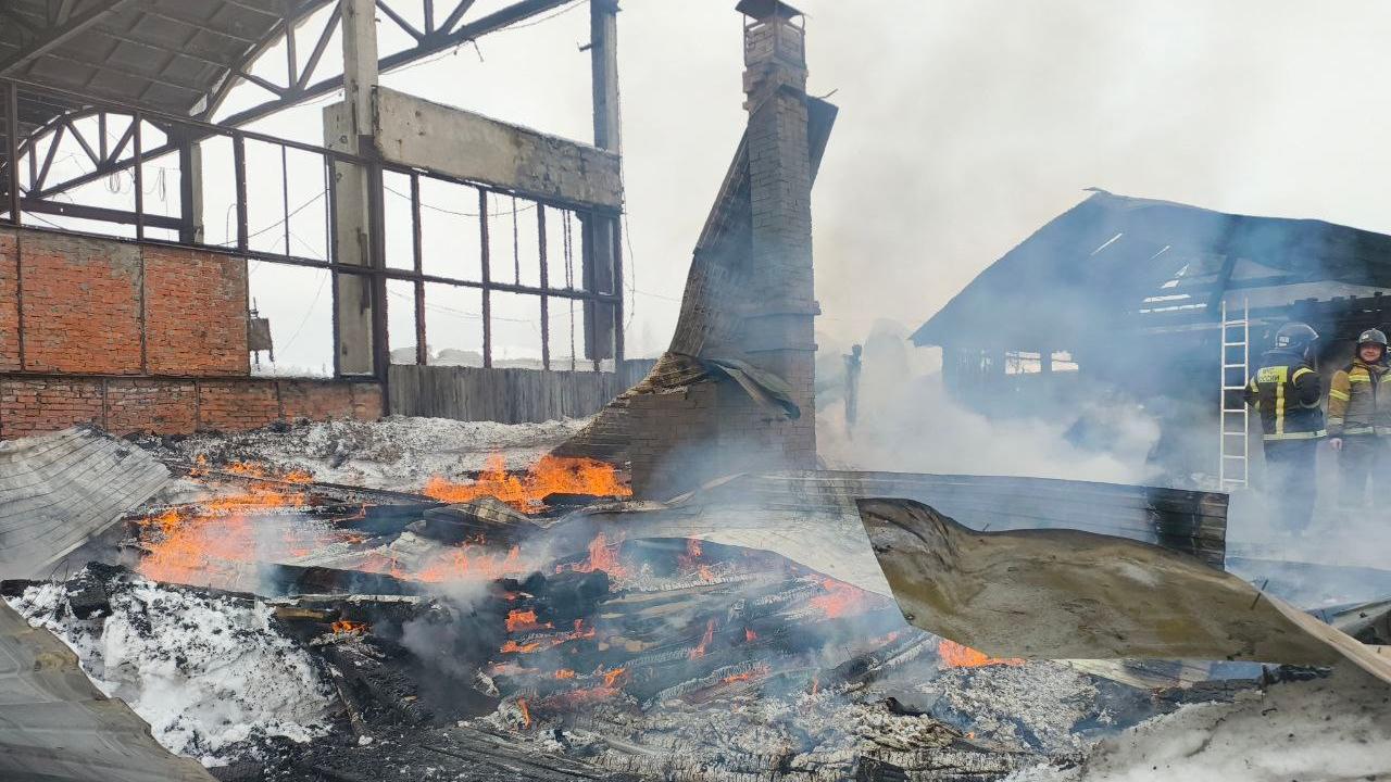 Часть предприятия сгорела. Причина происшествия пока выясняется.