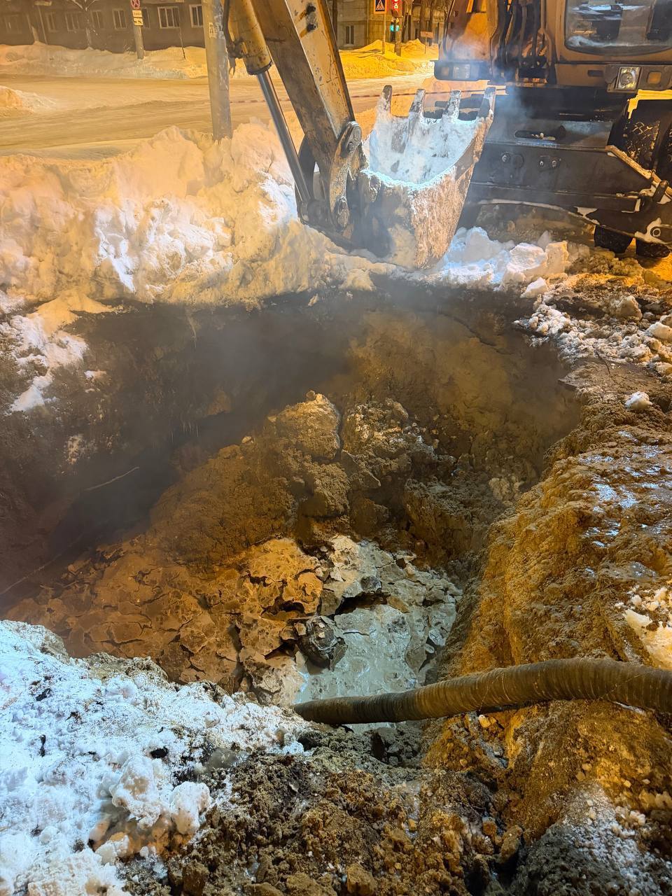 Несмотря на сильный мороз, бригады делают всё возможное, чтобы как можно скорее возобновить водоснабжение для жителей близлежащих домов.