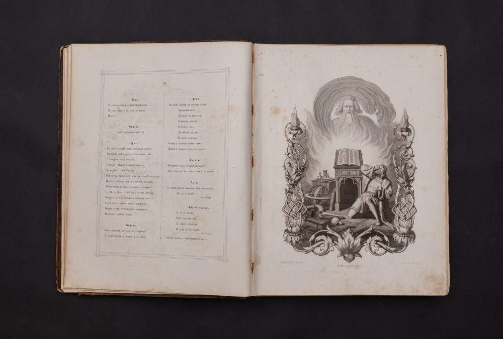 — Над передачей отдельных отрывков и сцен «Фауста» работали известные русские поэты: Василий Жуковский, Александр Грибоедов, Фёдор Тютчев, Александр Веневитинов, Алексей Толстой. Перевод обеих частей трагедии, признанный критиками лучшим переводом «Фауста», появился в конце ХІХ века. Его автором был известный русский поэт Афанасий Фет, — рассказали сотрудники музея.