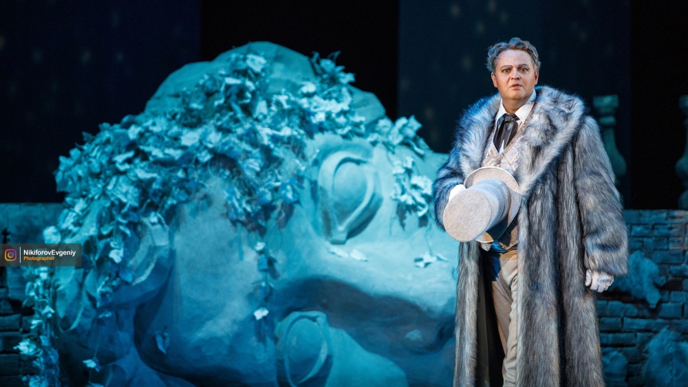 Партию Онегина в нём исполнил известный баритон Владимир Мороз. Надо отметить, что голос артиста звучал с таких значимых сцен, как Метрополитен-опера, Ковент-Гарден, Ла Скала и многих других.