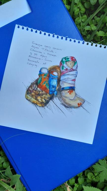 Как отмечают в музее, особое впечатление произвели сохранившиеся марийские женские рубахи и головные уборы первой половины ХХ века, принадлежавшие близким родственникам семьи Евсеевых. Важно и то, что в ходе экспедиции были сделаны художественные зарисовки и наброски, связанные с традиционной вышивкой и историческими местами известного краеведа.