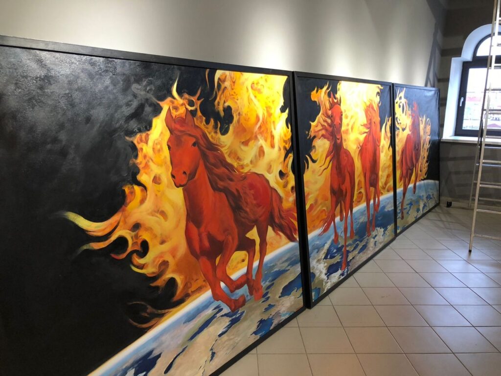 Елена Ковылина представляет серию новых произведений. Фрактальные антенны, исполненные на основе орнаментов из коллекции Всероссийского музея декоративного искусства, стали частью картин художницы: в них выражена авторская гипотеза о том, что прошлое, настоящее и будущее присутствуют в моменте «здесь и сейчас», а предметы декоративно-прикладного искусства, возможно, являются частью некоторой высокотехнологичной утерянной системы прошлого.