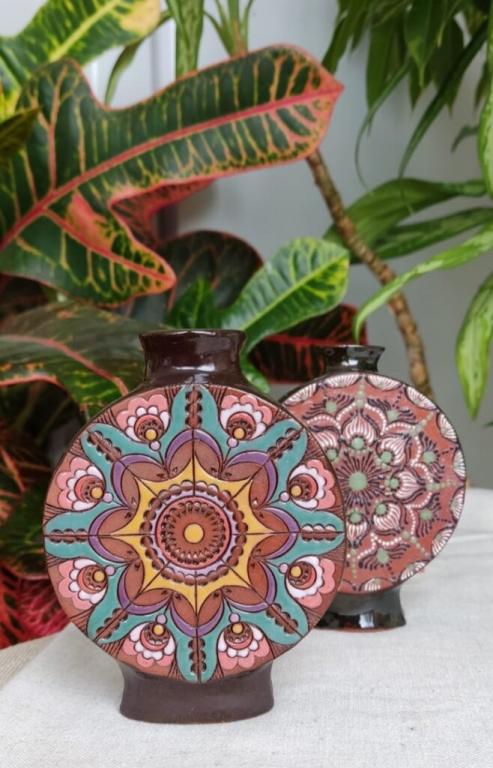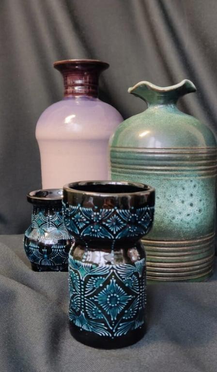 «Вазочки для души» — так она назвала свой проект. В глиняных работах мастерица использовала самые разнообразные художественные приёмы и техники.