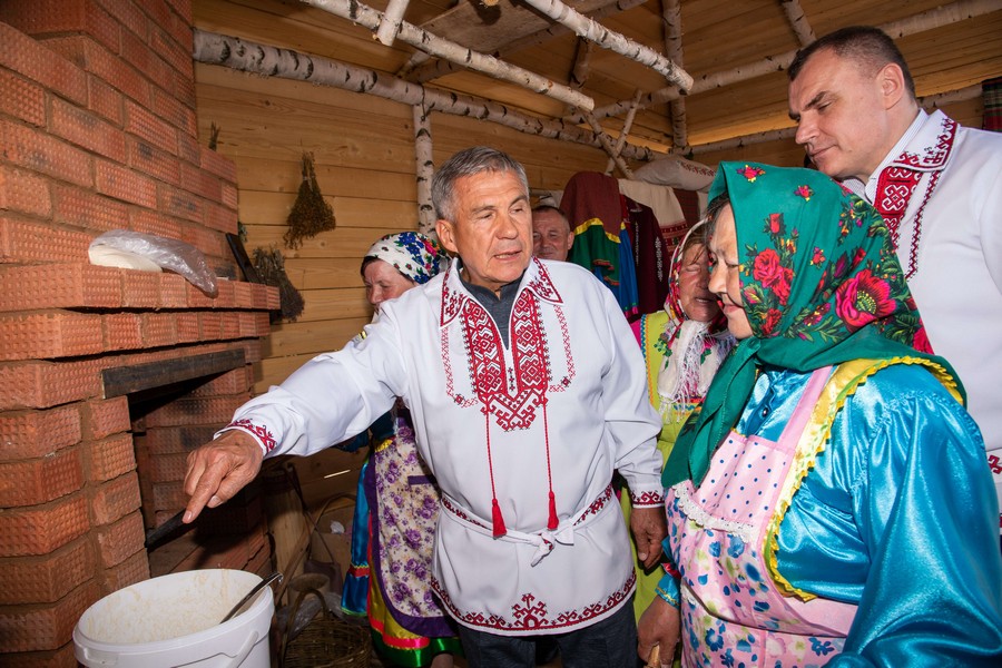 «Марийцы — дружелюбный и трудолюбивый народ, который бережно относится к своему языку и обычаям. Мы только что попробовали марийскую национальную кухню. Я поражен, как вы бережете свои традиции. Это заслуживает большого уважения. У вас нужно многому научиться, и вам за это большое спасибо!», — обратился Рустам Минниханов к гостям.